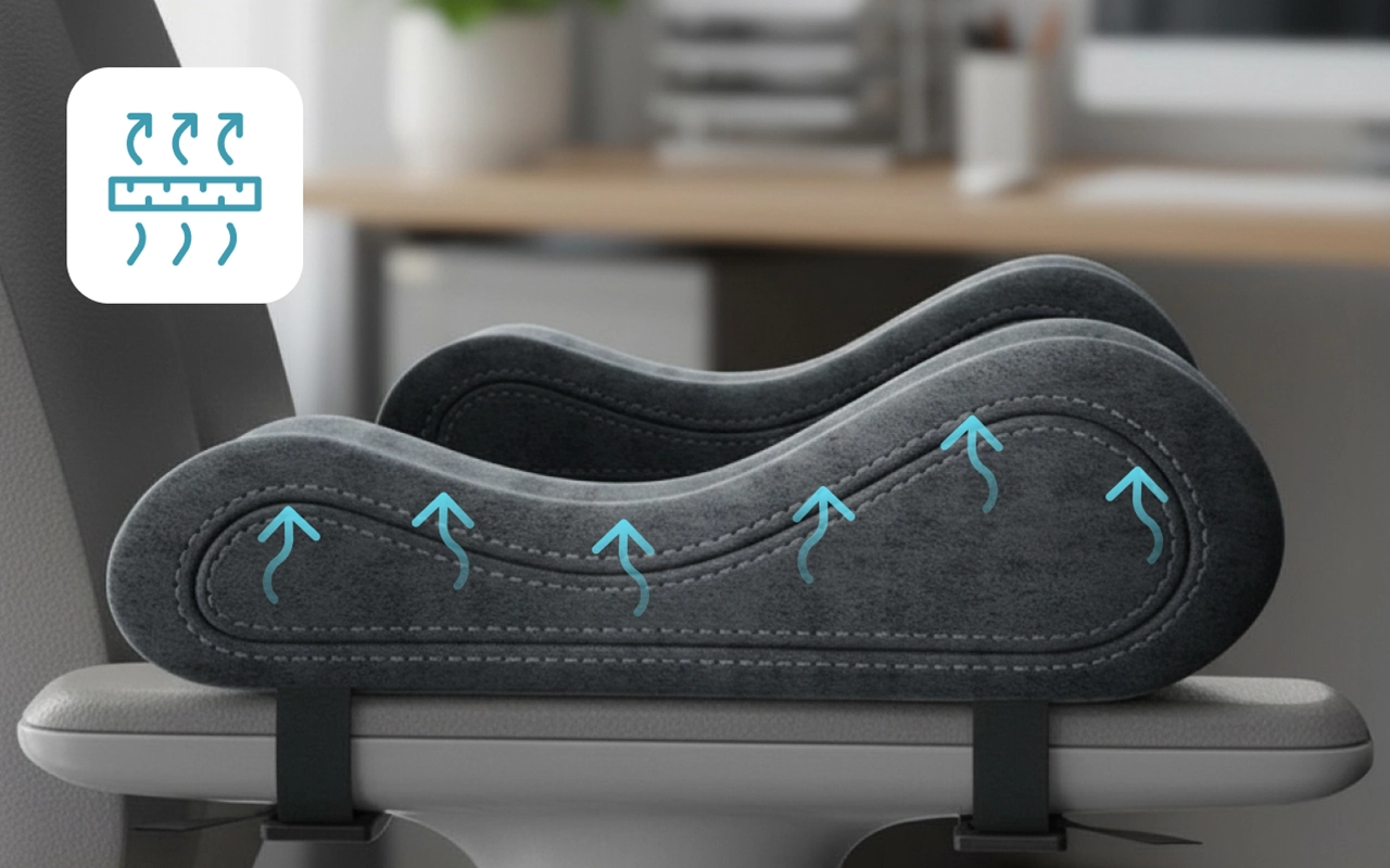 El núcleo de espuma viscoelástica alivia los brazos cansados distribuyendo el peso de manera uniforme. Cada almohadilla reduce el estrés en las articulaciones, ayudándote a sentirte relajado durante largas sesiones.