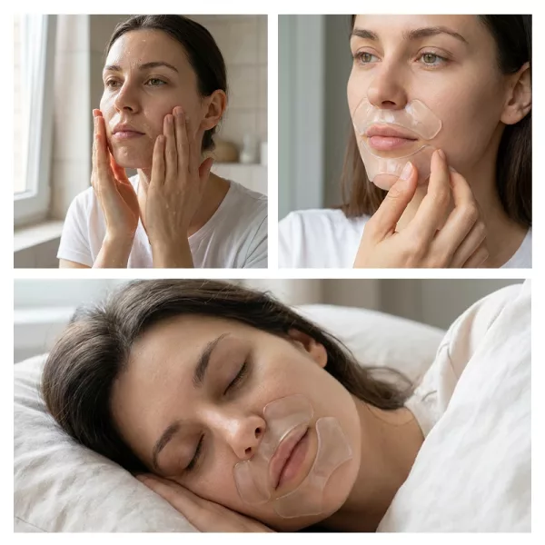 Solo lo lavo y me lo vuelvo a poner cada noche. Mi boca se ve más suave y se siente más tersa después de dormir con ellos. ¡Estoy muy contenta con estos parches!