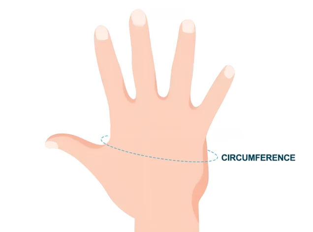 - 1. Envuelve la cinta métrica alrededor de tu palma, justo debajo de los nudillos.