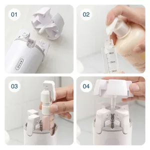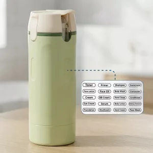Llevé este frasco de viaje en mi último viaje a la playa y me encantó no tener que llevar botellas separadas para champú, loción y mi limpiador facial. ¡Tan conveniente!