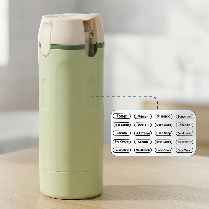 Es genial no necesitar cuatro botellas separadas. Me gustan las ventanas transparentes y la forma en que cada presión da justo la cantidad necesaria. Hace todo más simple.