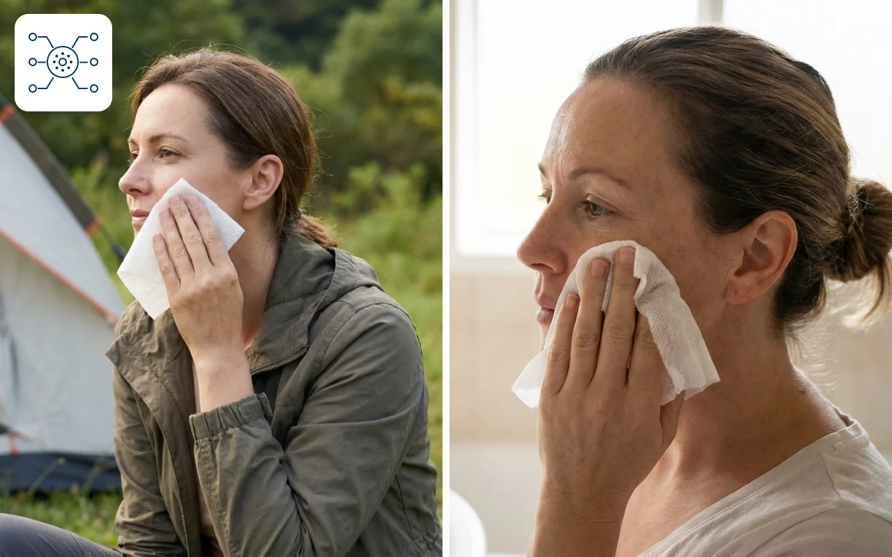 Guardo estas toallitas faciales en mi mochila. Se despliegan rápido, se sienten muy suaves y son perfectas después del fútbol o para limpiar manos pegajosas en movimiento.