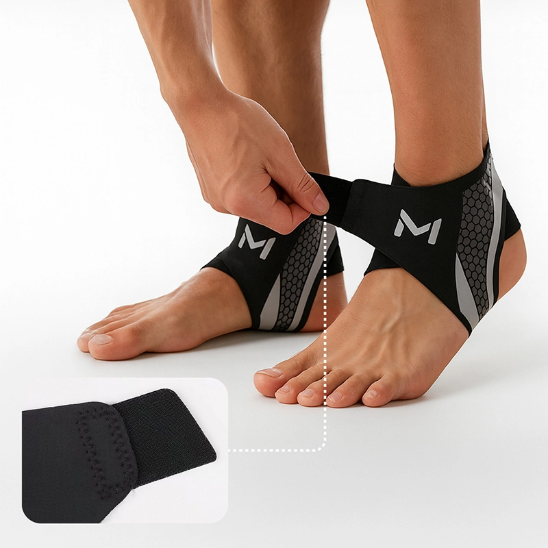 Ajustar con el Velcro es súper fácil. Puedo ponérmelo rápido antes de la práctica de baloncesto. Mi pie se siente seguro durante todo el partido.