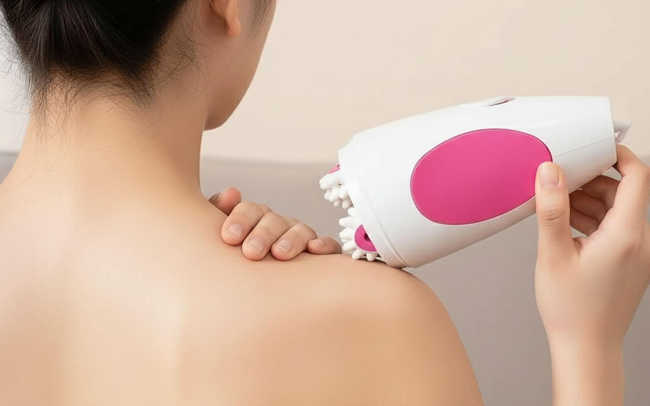 Uso el masajeador después de mis entrenamientos y ayuda a que mis piernas se sientan menos adoloridas y mi piel se vea mucho más suave.
