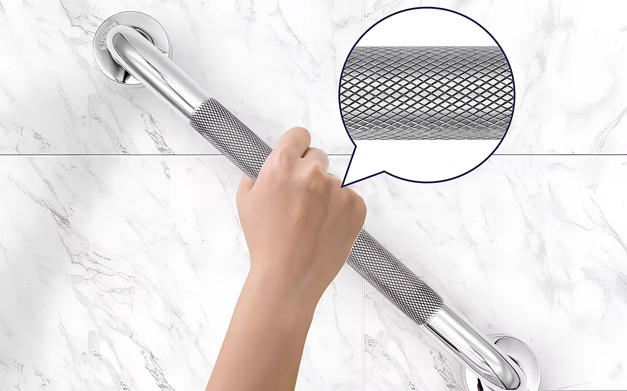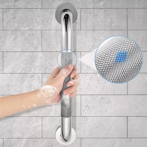 Uso la barra al salir de la bañera y nunca se resbala en mi mano. La parte antideslizante realmente funciona bien.