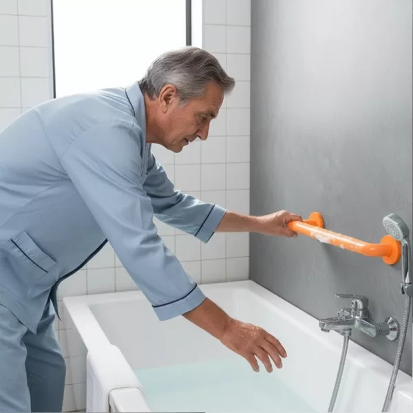 Puse este pasamanos para mi papá el mes pasado. Ahora se siente seguro al entrar y salir de la ducha. Ya no me preocupo por resbalones.