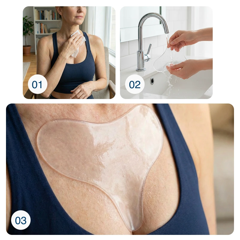 Me encanta lo sencillo que es este parche de silicona de usar. Se mantiene fijo toda la noche y las líneas en mi pecho casi desaparecen por la mañana. Me siento mucho más segura.