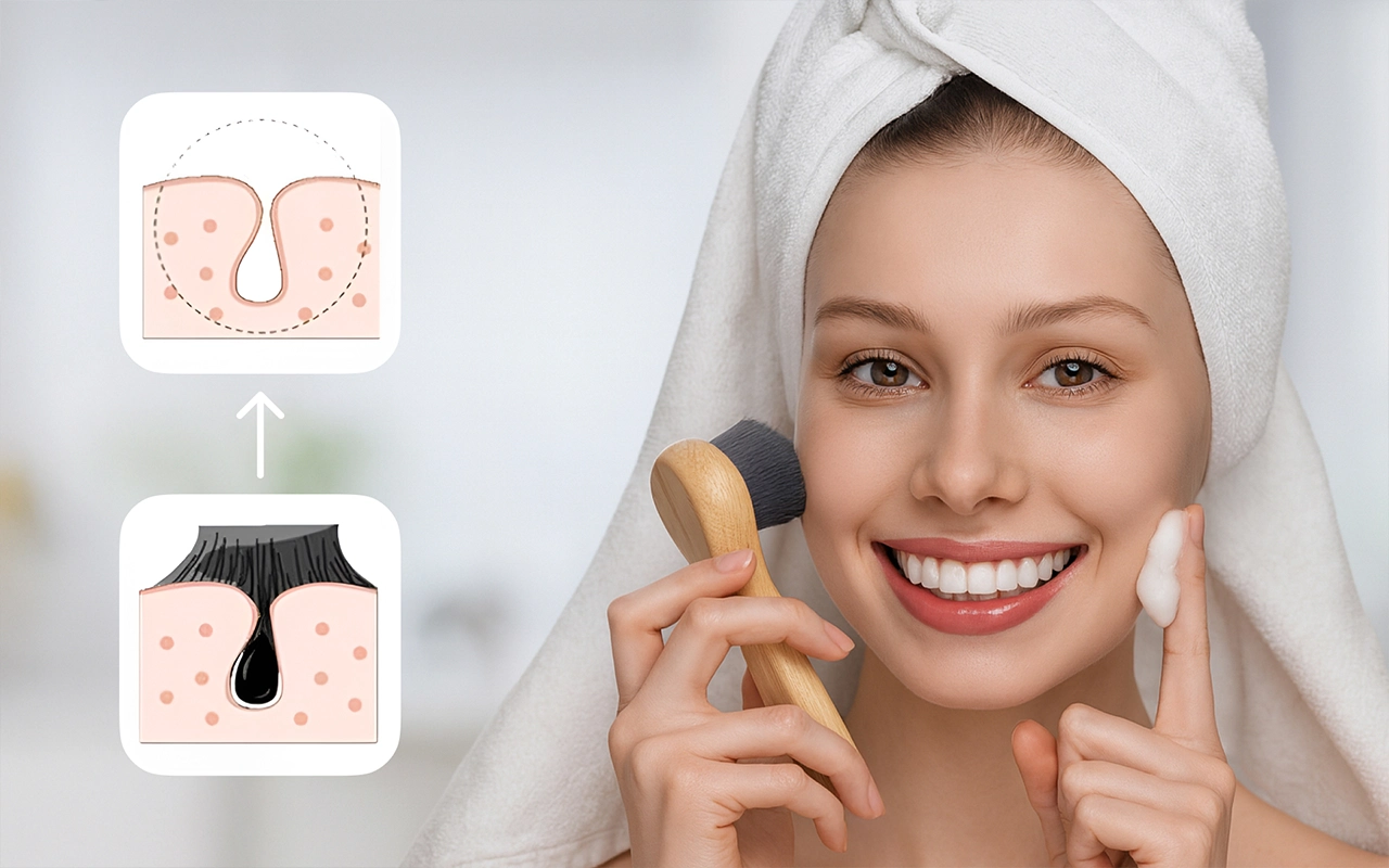 Las cerdas suaves eliminan las células muertas de la piel sin irritación. Tu cutis se mantiene claro, brillante y suave después de cada uso.