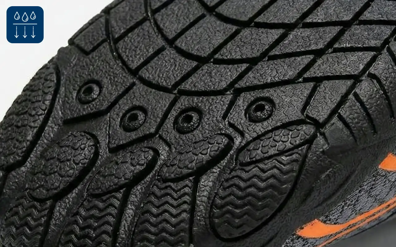 La exclusiva suela de cinco dedos aporta estabilidad en superficies mojadas o irregulares. Te mantienes firme durante los deportes, en playas o en orillas de ríos.