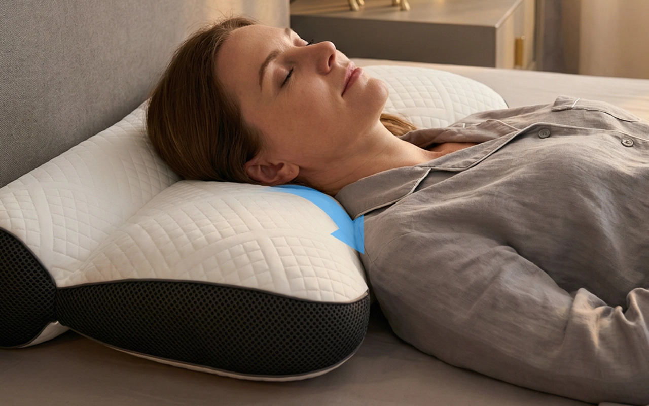 Era escéptico, pero esta almohada cervical realmente alinea mi cabeza y mi cuello. Me duermo más rápido y ya no me despierto dando vueltas.