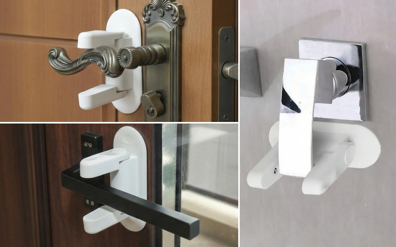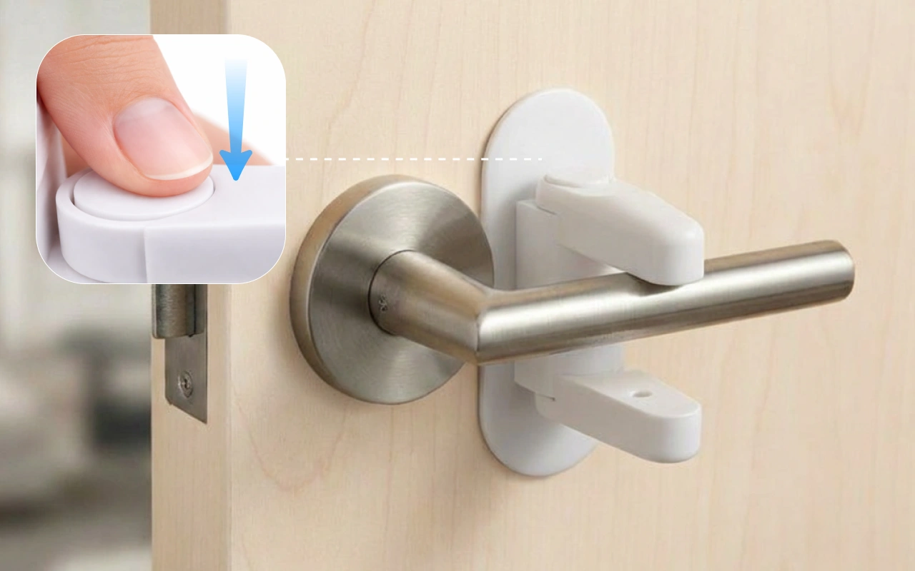 El seguro de seguridad Ortorex se adapta a la mayoría de las manijas de palanca, integrándose en cualquier decoración. Un solo pestillo ingenioso ofrece protección confiable en toda tu casa.
