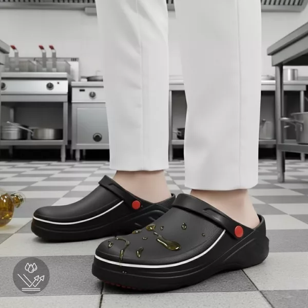 Estos zapatos de cocina son muy cómodos incluso después de un doble turno. No me duelen los pies para nada y me encanta lo fáciles que son de limpiar.