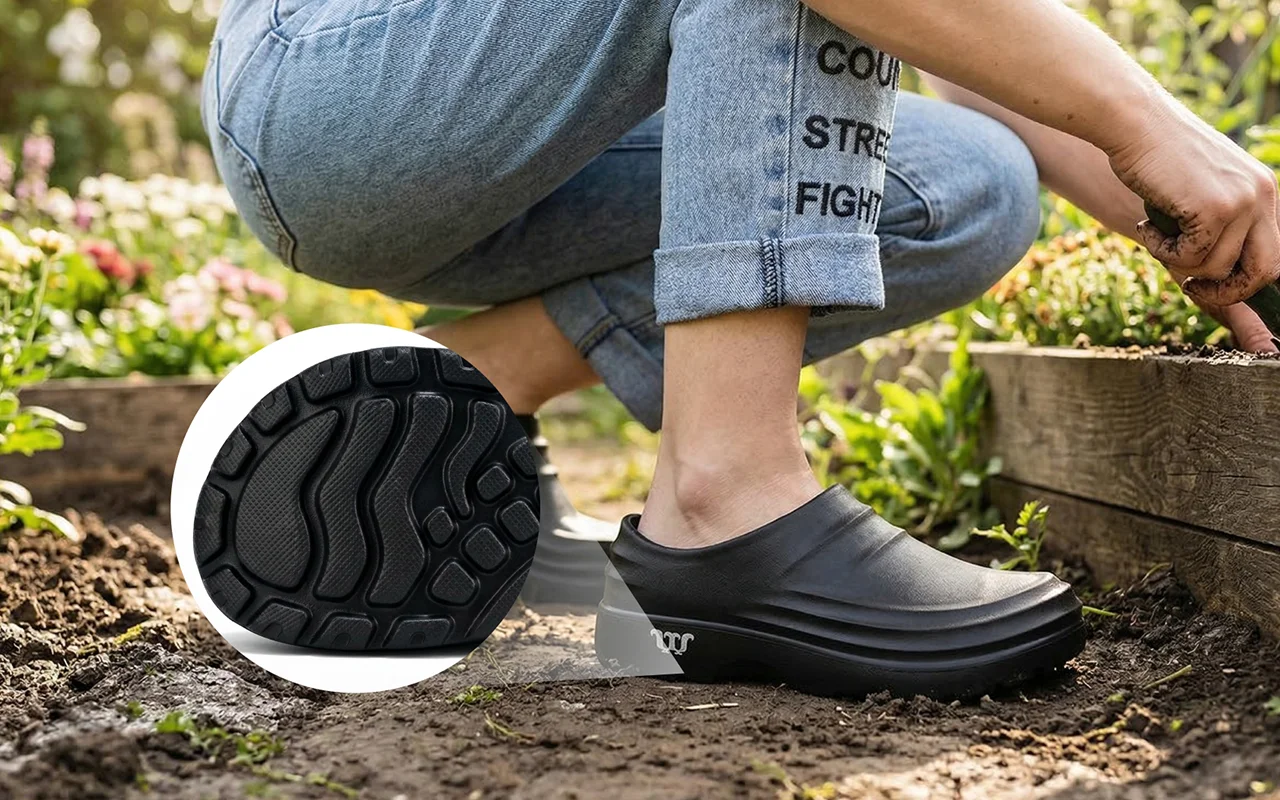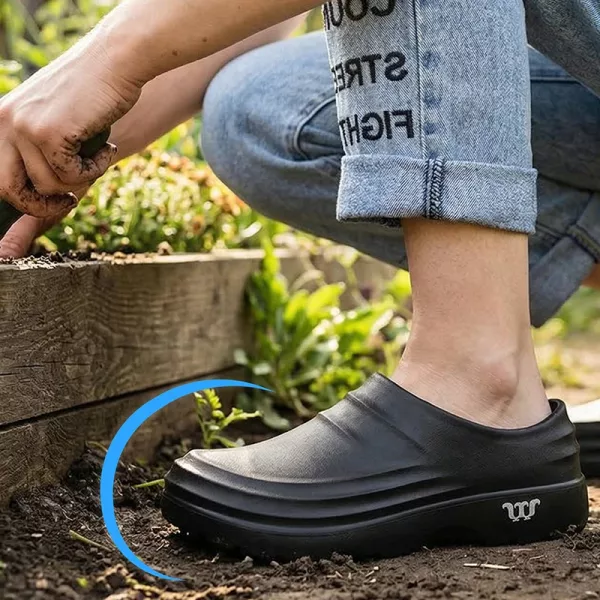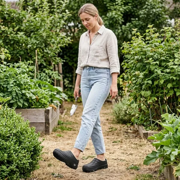 Uso estos zuecos cuando lavo el coche y corto el césped. El agarre en el concreto mojado es firme, mis arcos se sienten apoyados y mis pies se mantienen secos y cómodos.