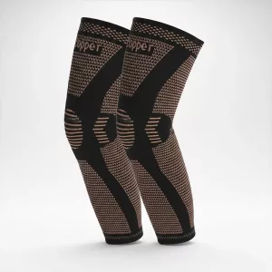 Estoy de pie durante horas en mi trabajo y esta manga de cobre ha hecho una gran diferencia. Las bandas evitan que se enrolle y mis piernas no duelen tanto.