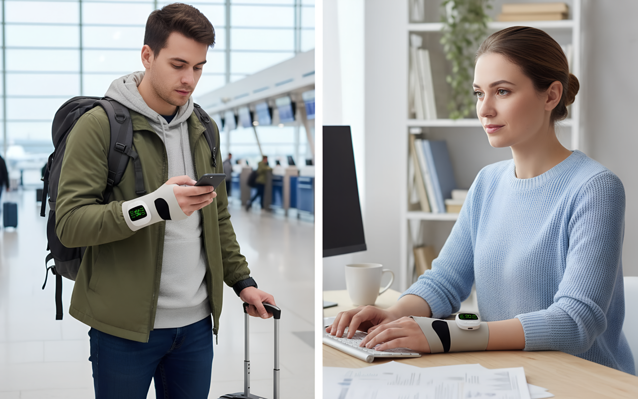 Muévete fácilmente, sin cables ni enchufes, dondequiera que vayas. Usa Ortorex durante el trabajo, el descanso o mientras viajas.