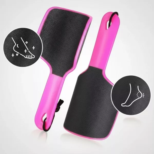 ¡Por fin, mis talones están suaves de nuevo! La lima de doble cara hizo que eliminar las zonas secas fuera rápido y fácil. El mango me permite mantener un buen agarre incluso cuando tengo las manos mojadas.