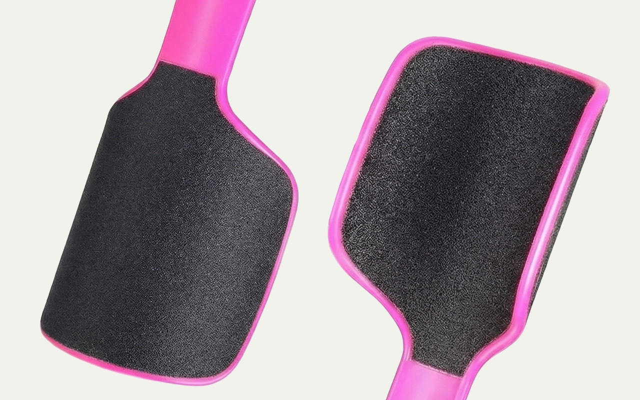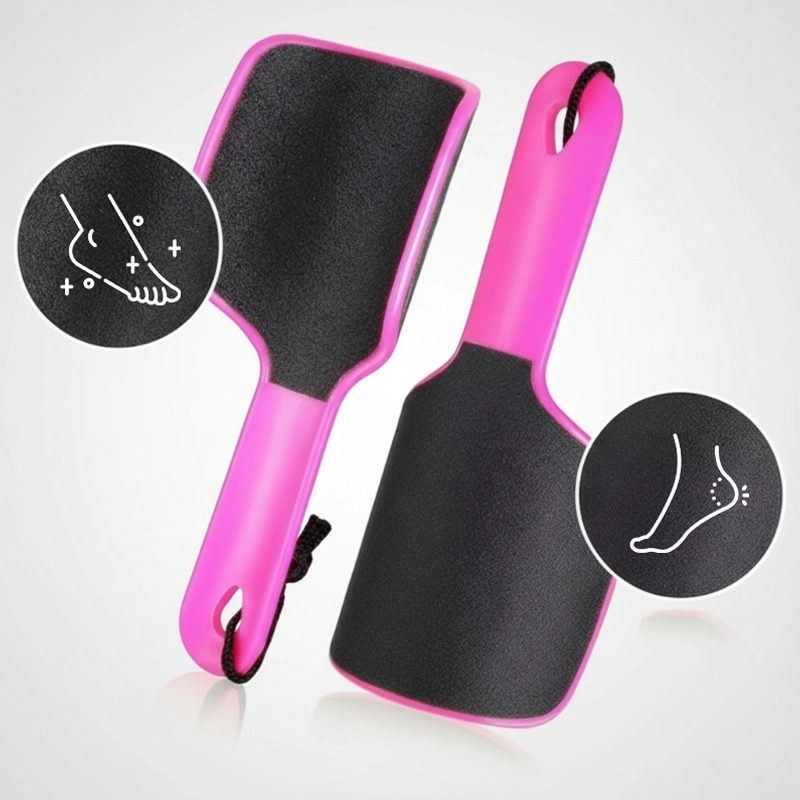 Nuestro exfoliante de pies ofrece un cuidado personalizado y efectivo. Un lado elimina rápidamente la acumulación gruesa, mientras que el otro pule para un acabado suave.