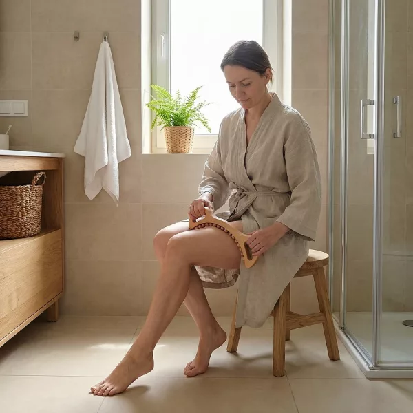 He estado usando este masajeador de madera todas las noches y mis muslos se sienten más firmes, menos hinchados, y mis pantorrillas ya no duelen después de turnos largos.