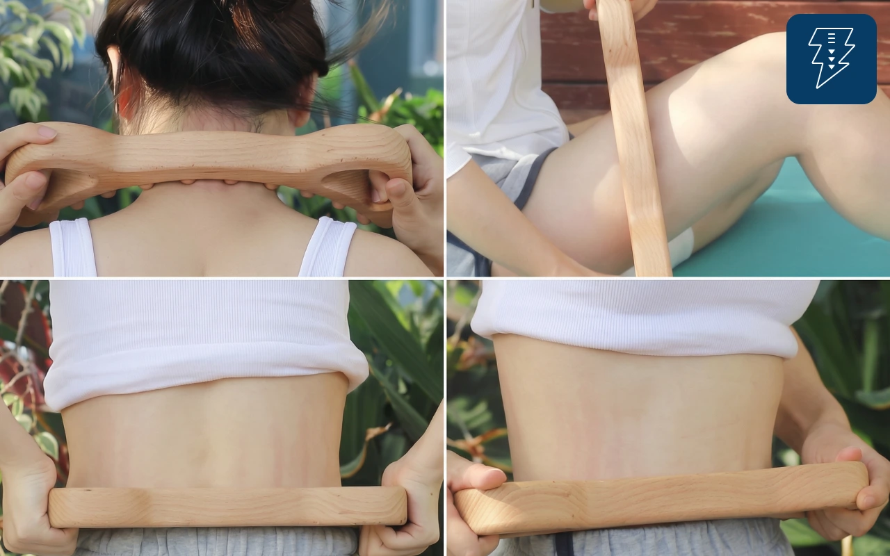 He estado usando este masajeador de madera todas las noches y mis muslos se sienten más firmes, menos hinchados, y mis pantorrillas ya no duelen después de turnos largos.