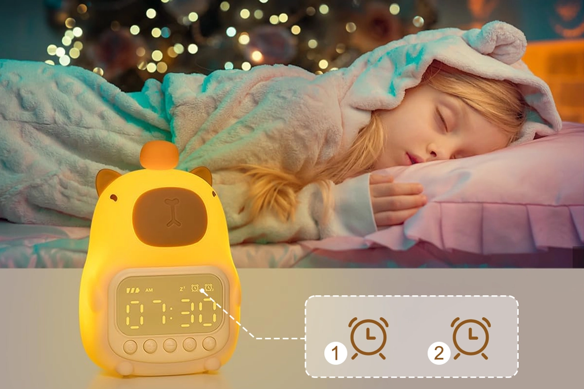 La luz suave ayuda a que los niños se sientan seguros después de la hora de dormir. Los controles digitales sencillos hacen que despertarse sea fácil cada día. Los materiales seguros y suaves resultan agradables y reconfortantes por la noche. El despertador Ortorex Cute Capybara añade un toque alegre a cada dormitorio.