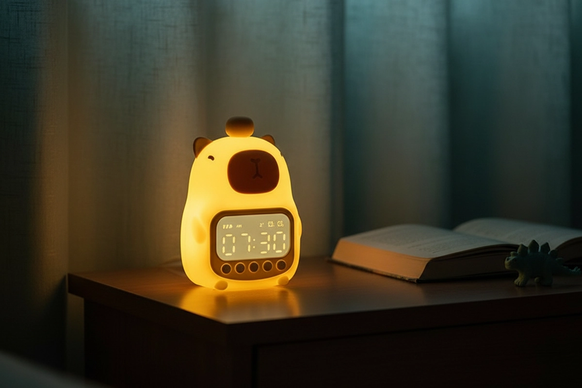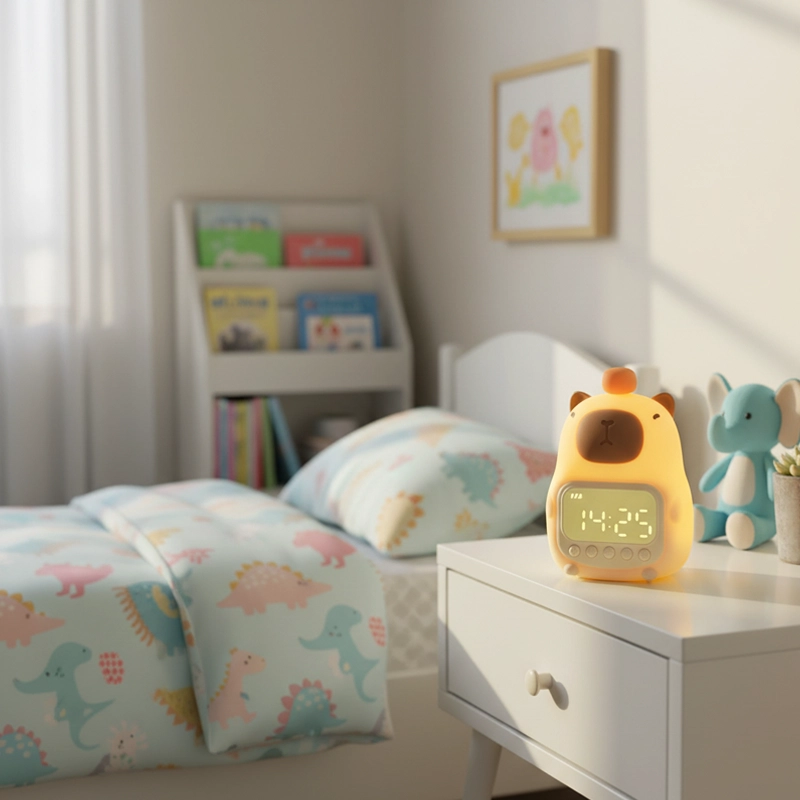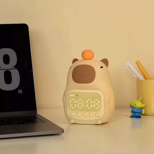 Compré este reloj de carpincho para la habitación de mi hijo. El brillo suave hace que la hora de dormir sea tranquila, y los botones sencillos le ayudaron a aprender a configurar su propia alarma.