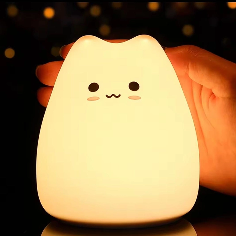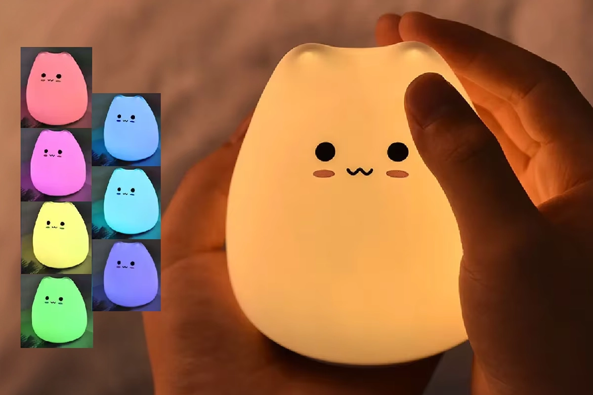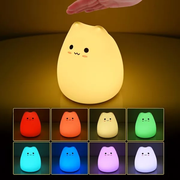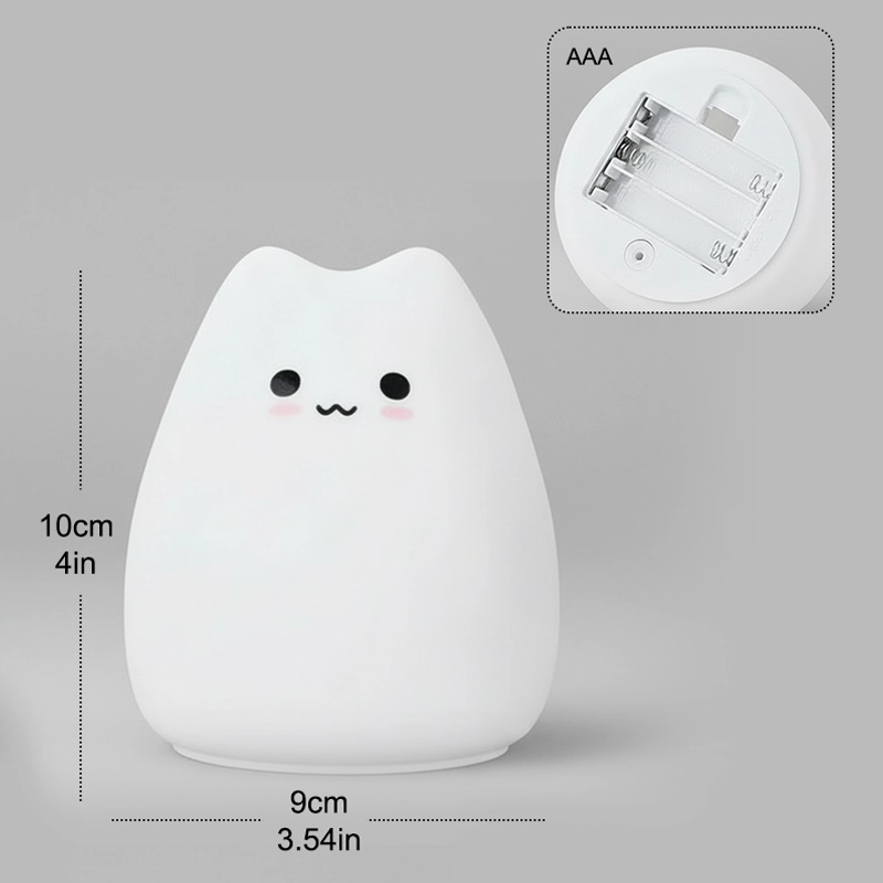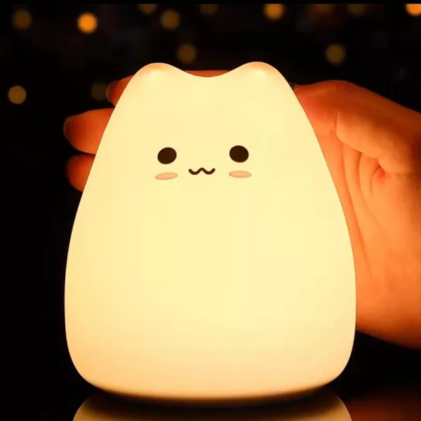 Compré esta linda lámpara de gato para mi hija. Ella misma la toca a la hora de dormir, elige un color y ahora se tranquiliza mucho más rápido.