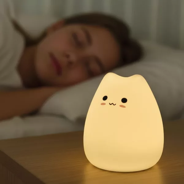 Tengo la lámpara de gatito en mi propia mesita de noche. El resplandor suave me permite leer un poco y aun así quedarme dormida fácilmente después.
