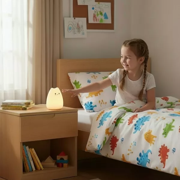 La silicona se siente muy suave, incluso mi niña pequeña puede sostenerla. No tiene bordes duros y la luz tenue mantiene su habitación acogedora toda la noche.