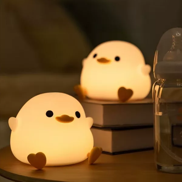 Usamos la lámpara de patito durante los cambios de pañal nocturnos. La luz suave me permite ver sin despertar del todo al bebé, y la batería dura fácilmente toda la semana.