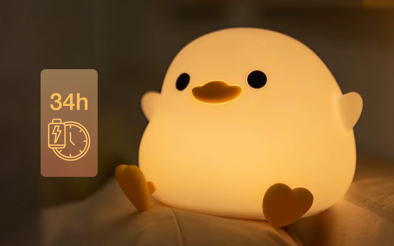 Usamos la lámpara de patito durante los cambios de pañal nocturnos. La luz suave me permite ver sin despertar del todo al bebé, y la batería dura fácilmente toda la semana.