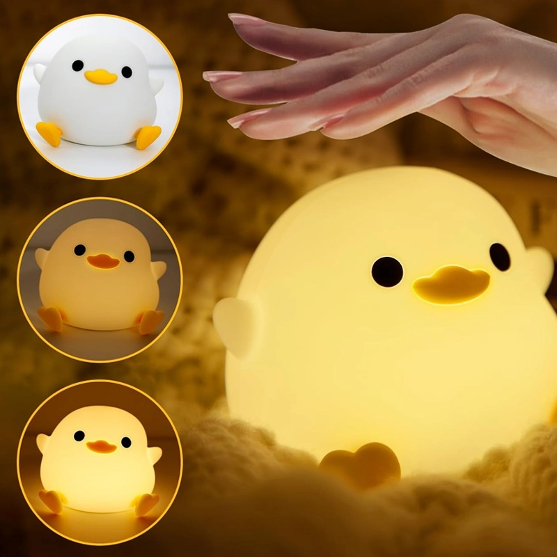 Compré este patito tan lindo para la habitación de mi hijo. El brillo cálido le ayuda aarse y le encanta tocarlo él mismo antes de dormirse.