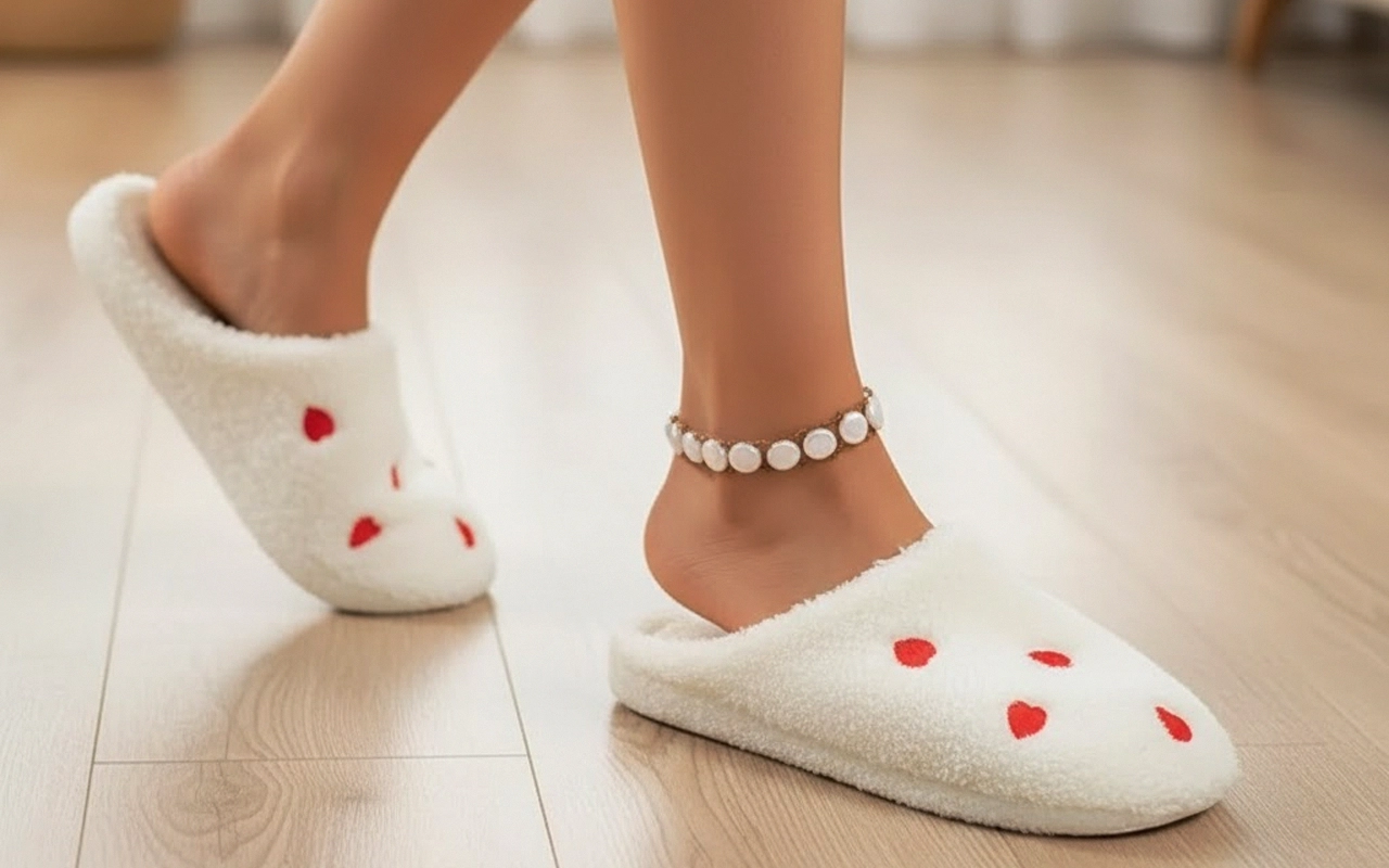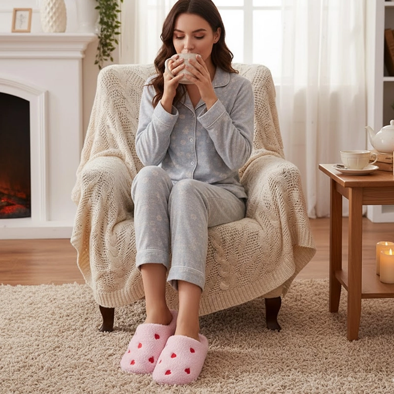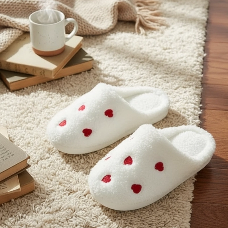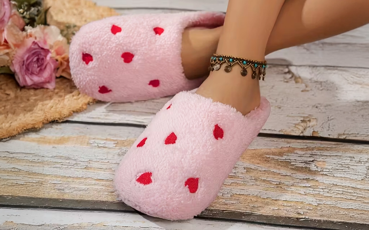 Dulces corazones le dan a cada conjunto un toque alegre. Estas pantuflas hacen que relajarse en casa se sienta especial y divertido.