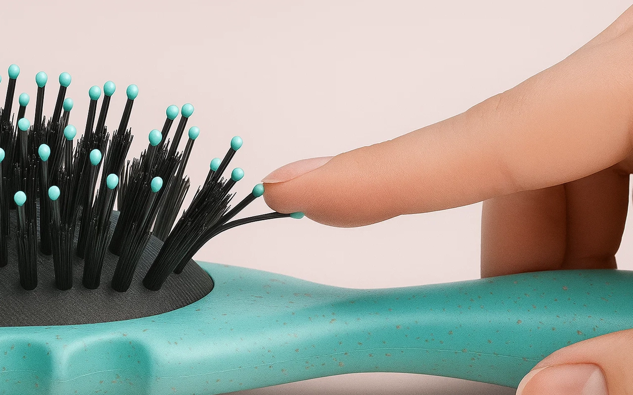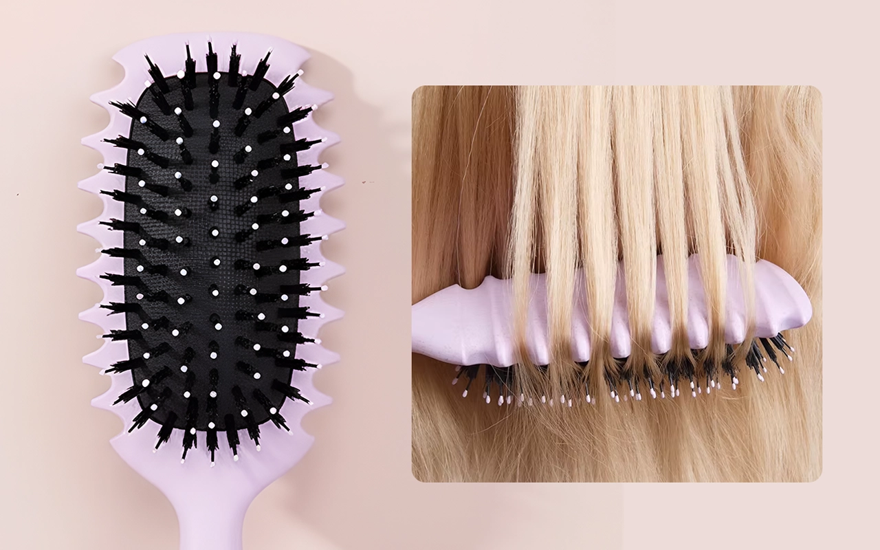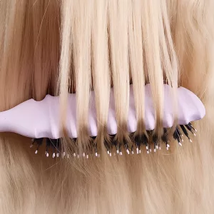 No más tirones ni jalones en cada pasada. Las cerdas de nailon flexibles se mueven suavemente, haciendo que desenredar rápido y fácil.