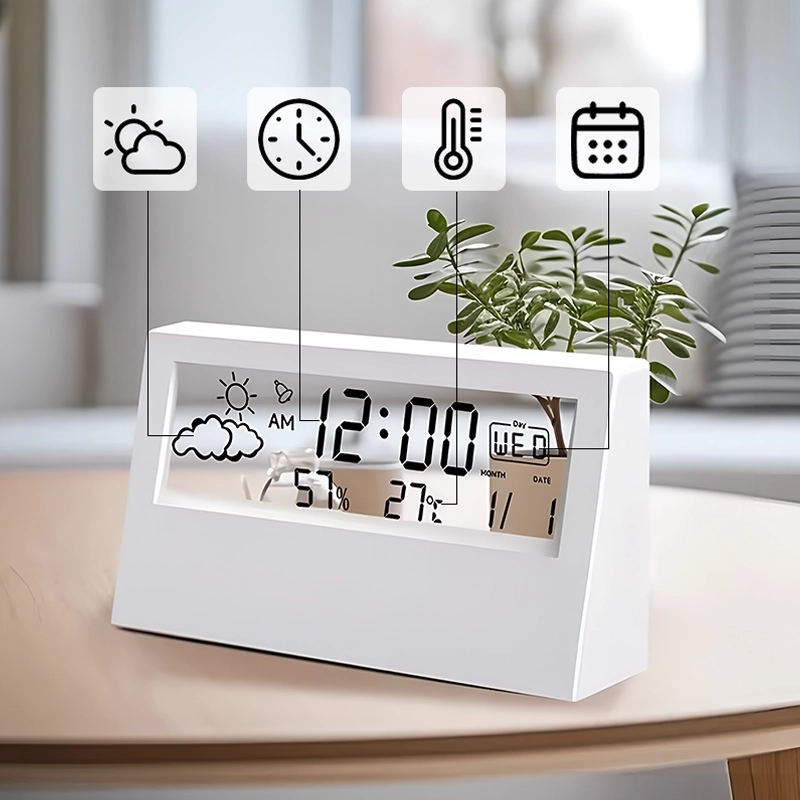 La pantalla de reloj meteorológico tan grande y clara que, incluso cuando tengo prisa por la mañana, sé exactamente cómo se siente la habitación.