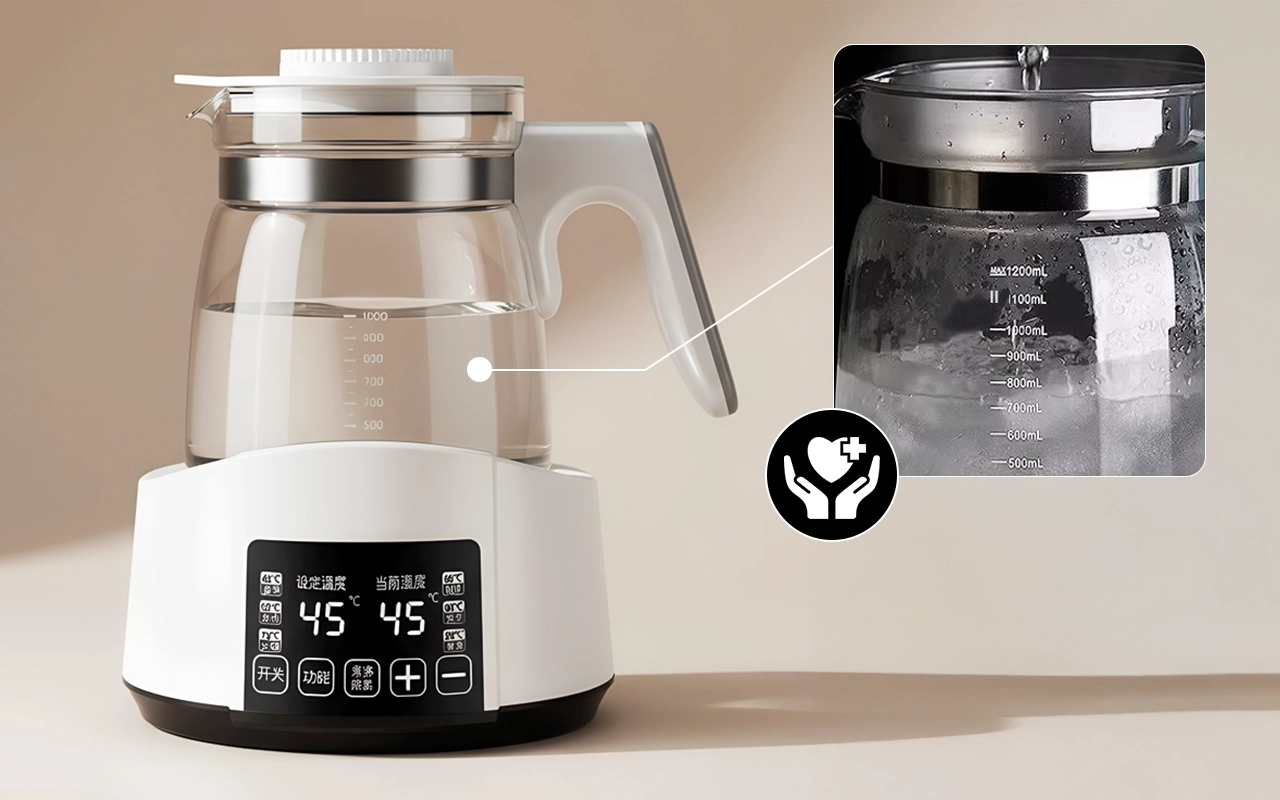 Me gusta cómo este calentador mantiene la leche a la temperatura adecuada. Las piezas de vidrio y acero parecen seguras y limpiarlo es súper fácil cada vez.