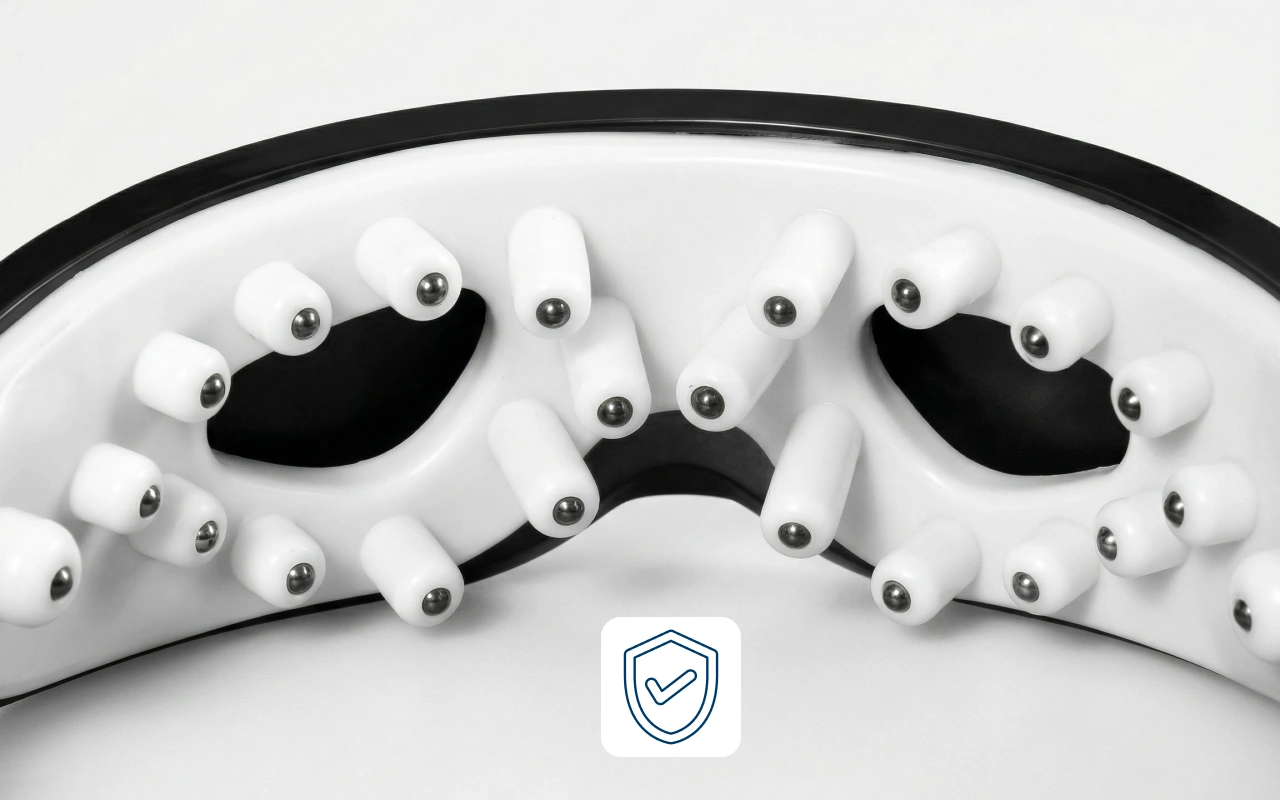 Potentes vibraciones alivian la tensión alrededor de los ojos. Siéntete renovado sin esfuerzo después de leer, usar pantallas o estudiar.