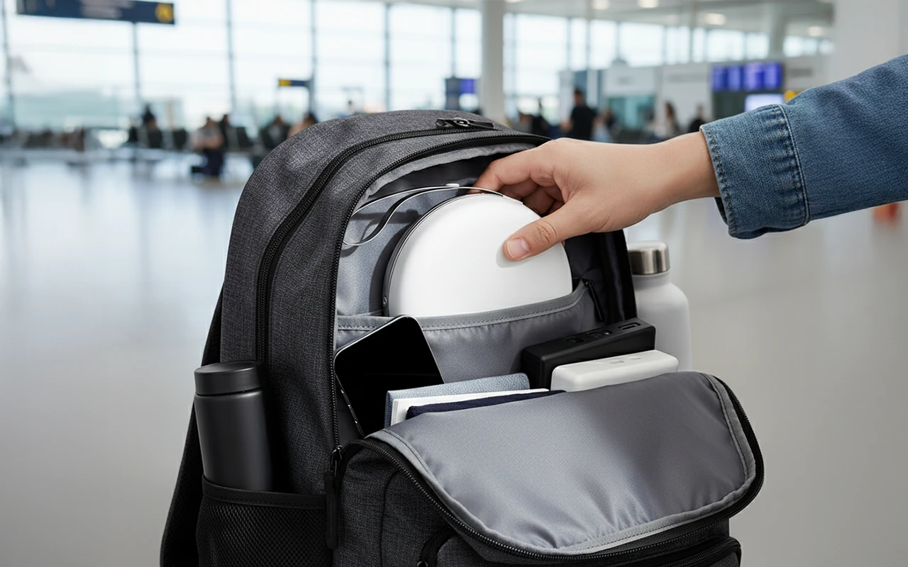 Cabe dentro de una funda pequeña, ahorrando valioso espacio en la bolsa. Llévala a todas partes, desde aviones hasta viajes en coche, sin molestias.