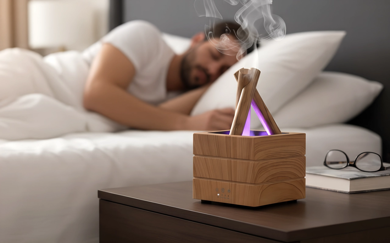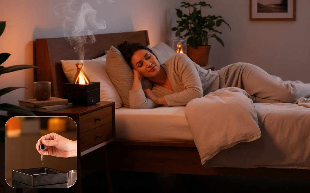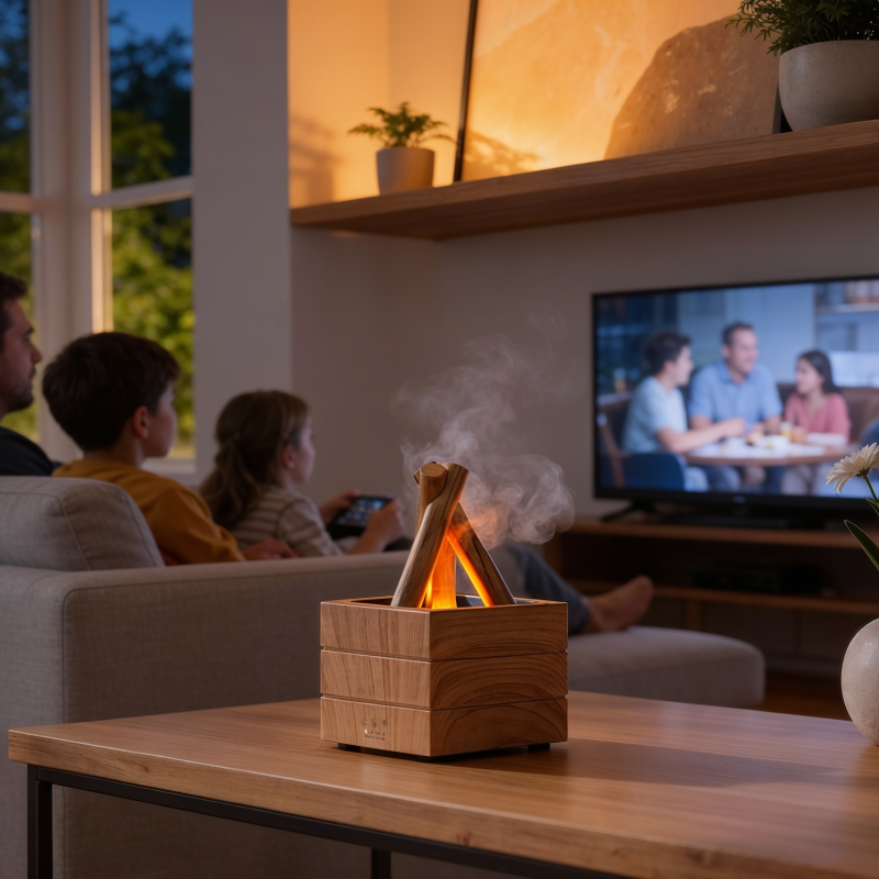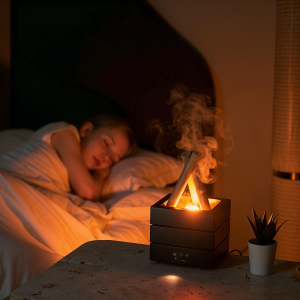 El difusor de fogata llena mi habitación con una suave niebla y los colores intermitentes me ayudan a dormir mejor cada noche. Uso aceite de lavanda para mayor calma.