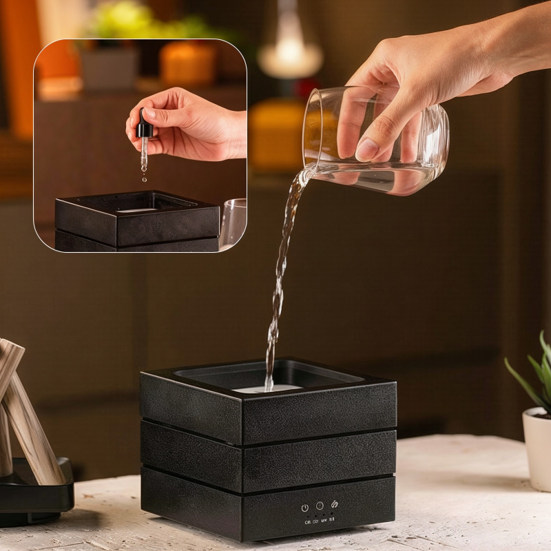 La niebla de aromaterapia calma los nervios y despeja la mente. Agrega tus aceites favoritos para relajarte, aliviar el estrés y dormir profundamente.