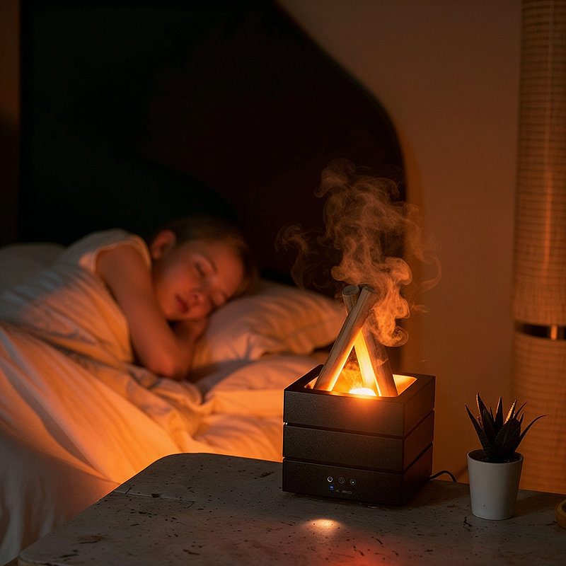 Tenemos el difusor de aroma tipo fogata en el dormitorio. Ayuda a que mi esposo duerma tranquilo. El temporizador me permite configurarlo y no preocuparme por apagarlo.