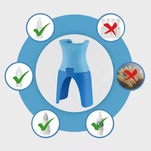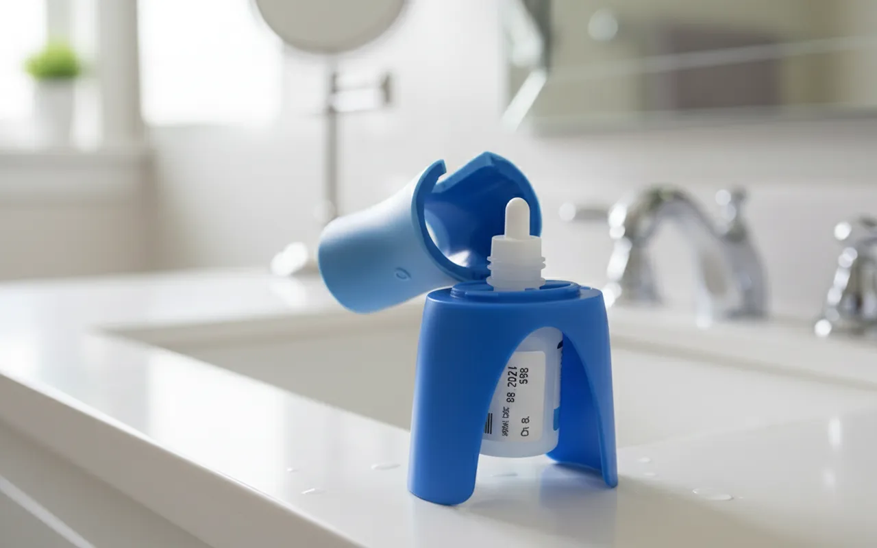 El dispensador de gotas Ortorex hace que los tratamientos oculares sean rápidos y sin desorden. Su diseño inteligente ayuda a posicionar el frasco exactamente donde lo necesitas. No más parpadeos, luchas ni gotas perdidas.