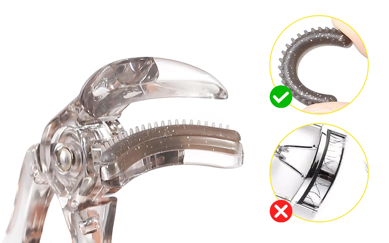 Siempre batallaba con párpados pellizcados, pero este rizador con peine es súper suave. Arregla todas mis pestañas de una vez y nunca las dobla raro.