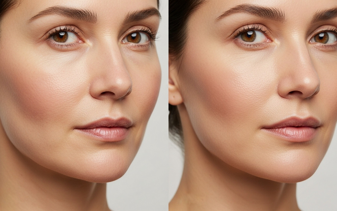 Los contornos se ven más definidos en solo unas semanas. La línea de la mandíbula parece más esculpida y las mejillas visiblemente más firmes.