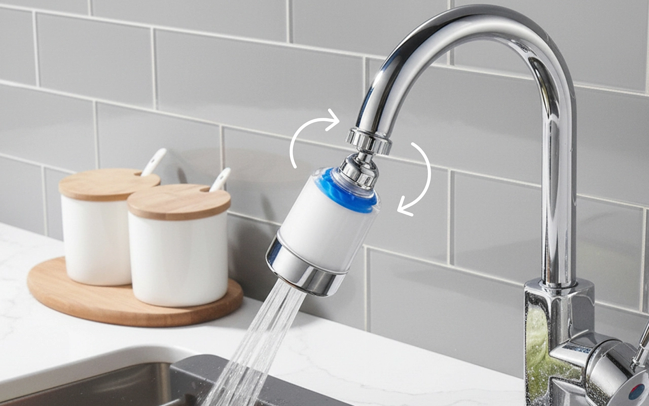 Lo coloqué en menos de un minuto. Nada complicado, solo agua pura del grifo y un giro súper práctico para cada rincón del fregadero.