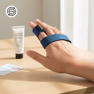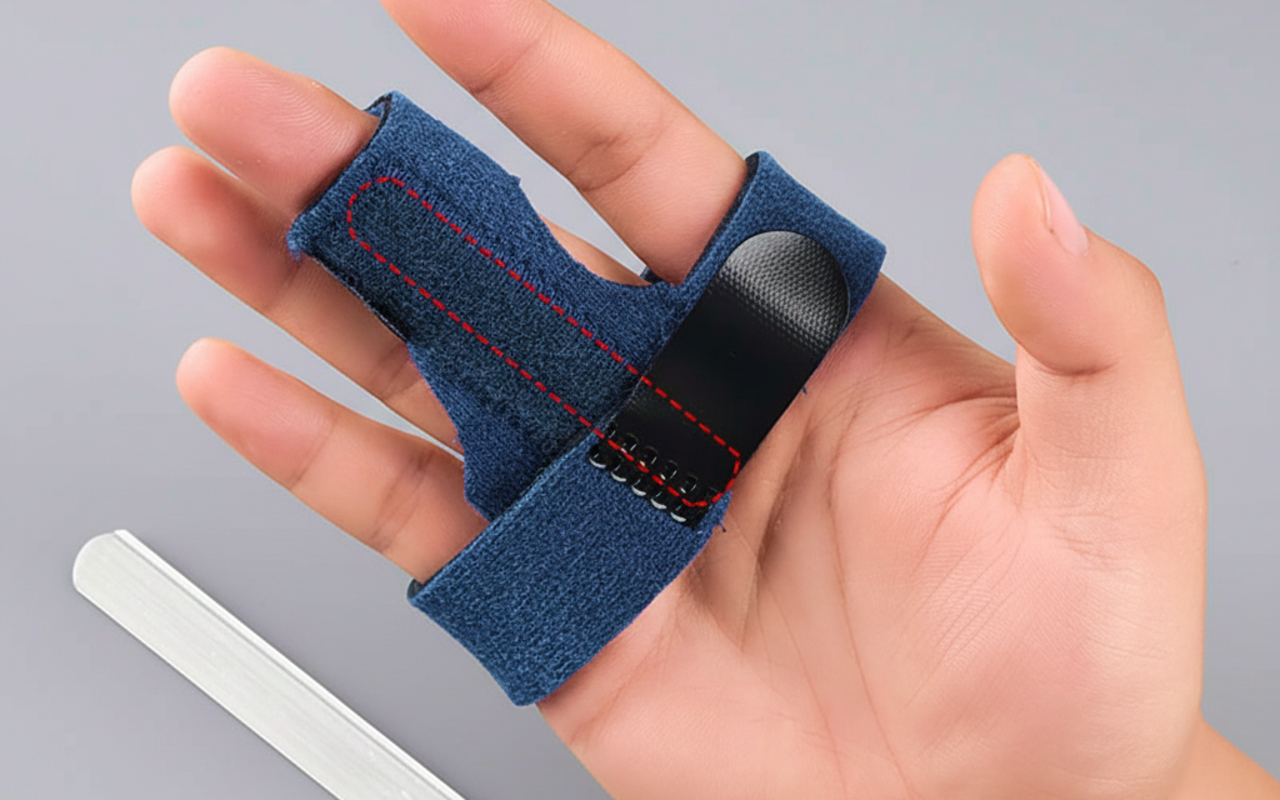 Guardo la férula en mi bolsa del gimnasio para cuando se me inflaman los dedos por hacer escalada. Se ajusta a distintos dedos y da alivio rápido.