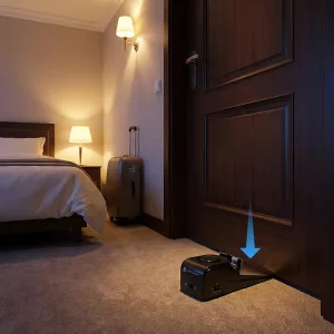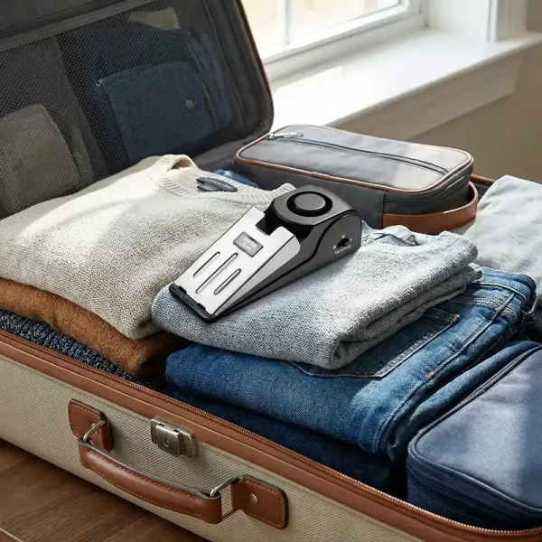 El diseño compacto cabe fácilmente en bolsos o maletas. Lleva seguridad rápidamente a hoteles, pisos o cualquier lugar temporal.