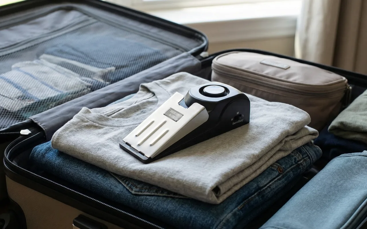 El diseño compacto cabe fácilmente en bolsos o maletas. Lleva seguridad rápidamente a hoteles, pisos o cualquier lugar temporal.