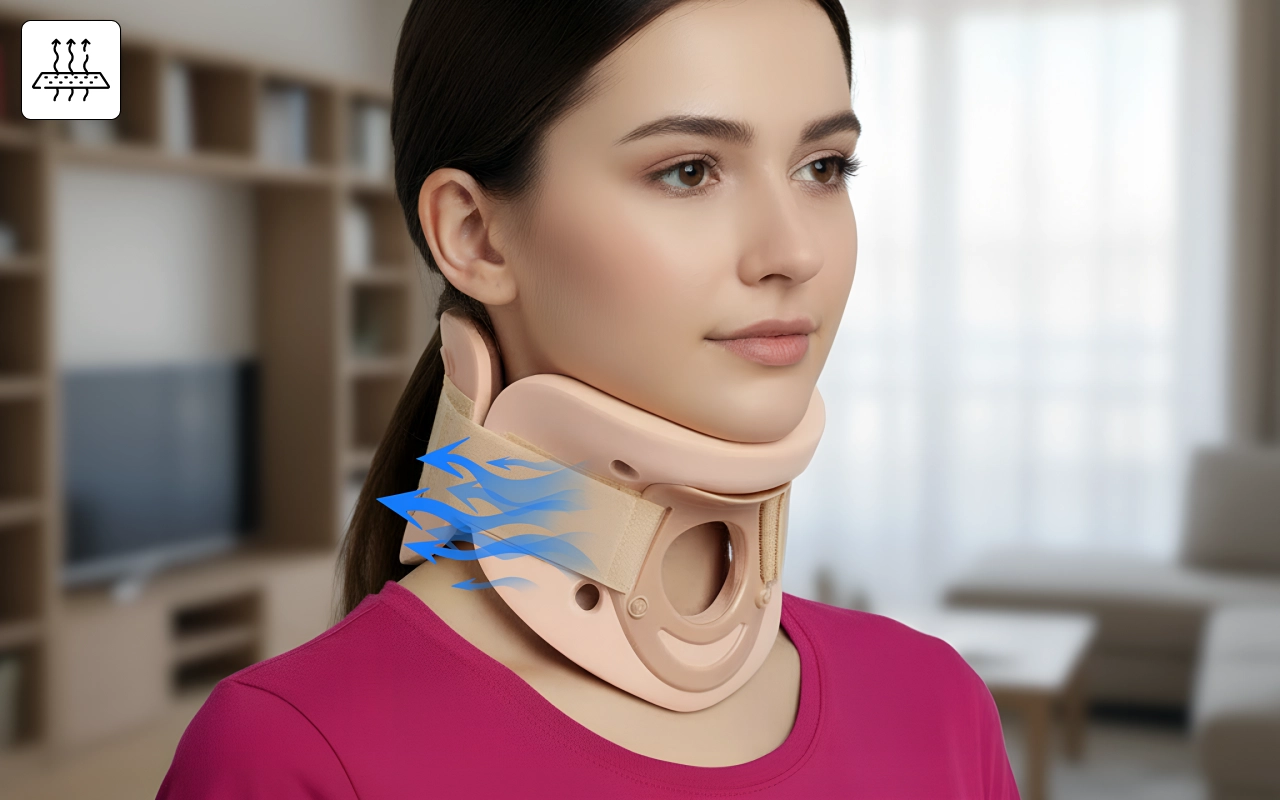 Mi quiropráctico sugirió un collarín blando, así que probé este. Es fácil de ajustar, ofrece un buen soporte y el material transpirable se siente genial todo el día.