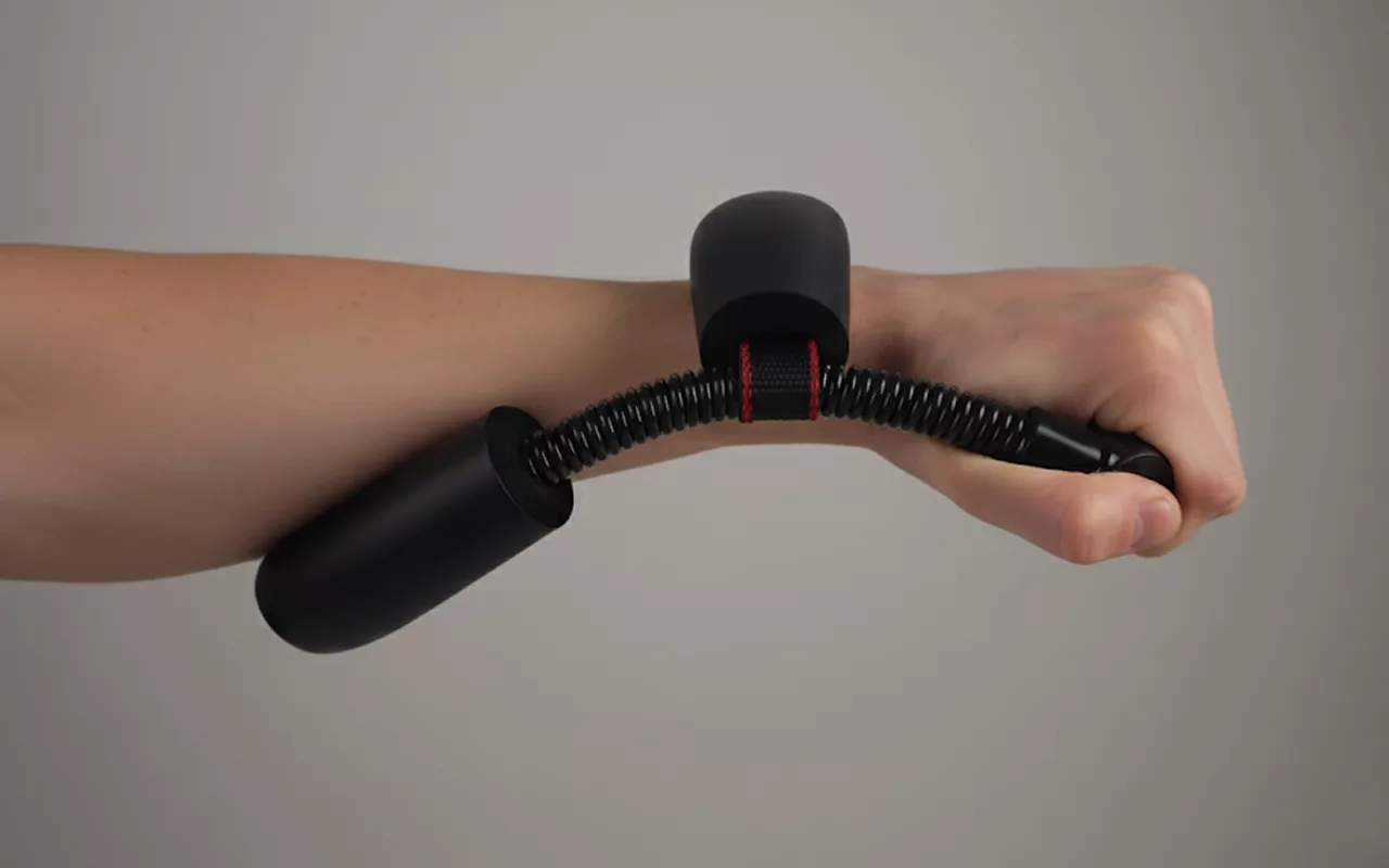 Uso la herramienta para el antebrazo en mi escritorio. Se siente resistente, cabe en mis manos grandes y me gusta que puedo hacerla más dura a medida que me fortalezco.