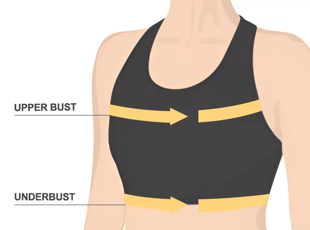 - 2. Para medir tu busto superior, pasa la cinta métrica alrededor del torso, justo debajo de las axilas y sobre la parte superior del busto.